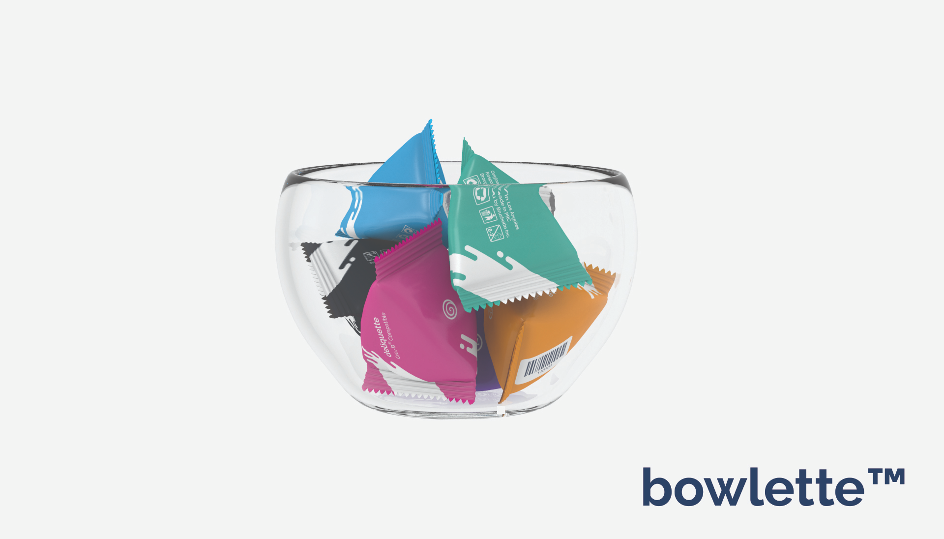 The new brushettes (aka the packets, or berlingot) can be stored in a clear bowl for easy dispensing.